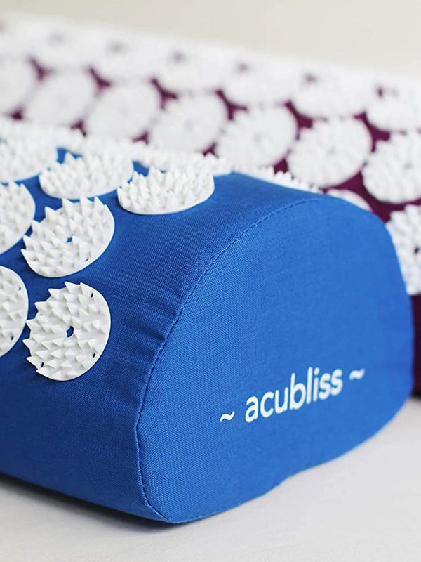 To target curved areas like the neck, lumbar and under the feet, use our acupressure pillow. It can be used by itself or in combination with the Acubliss Mat or several Acubliss Pillows at the same time.